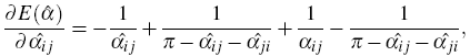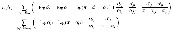 (let alpha ij and alpha ji be alpha angles opposite to the edge ij; all the alpha hat angles are the variables – the angles we are looking for, and alpha (without hat) are the correspondent angles in the